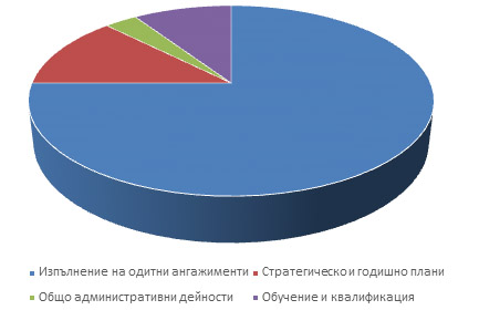 · Около 75 % от ЕФРВ – извършване на одитни ангажименти за даване на увереност и консултиране, годишно и стратегическо планиране;